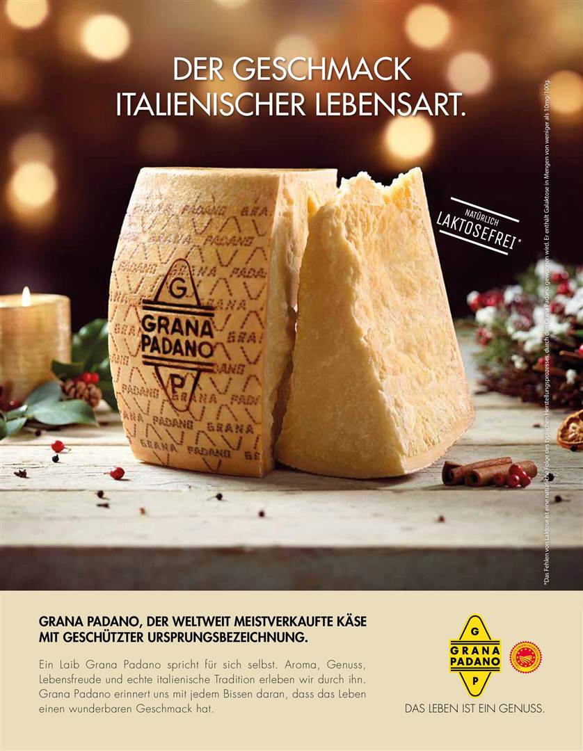 Ein Laib Grana Padano spricht für sich selbst. Aroma, Genuss, Lebensfreude und echte italienische Tradition erleben wir durch ihn. Grana Padano erinnert uns mit jedem Bissen daran, dass das Leben einen wunderbaren Geschmack hat.
