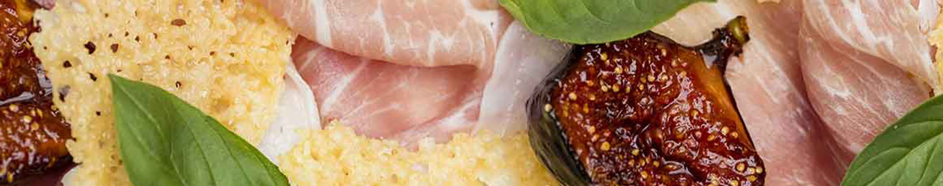 IN SHERRY-ESSIG UND KARAMELL GERÖSTETE FEIGEN MIT GRANA PADANO CRISPS UND PROSCIUTTO DI SAN DANIELE