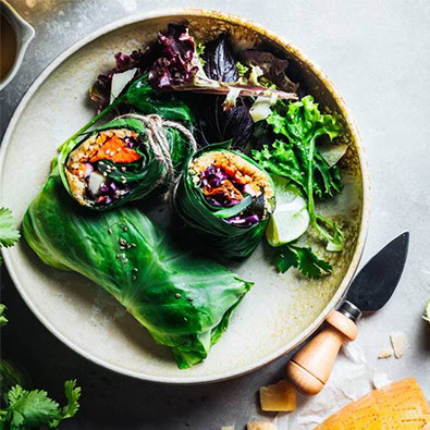 Das Backpapier jetzt an den Enden wie bei einem Bonbon zusammendrehen. Im Kühlschrank 30 Minuten abkühlen lassen. Die Frittata in Scheiben schneiden und sofort mit Kirschtomaten und frischem Basilikum servieren.