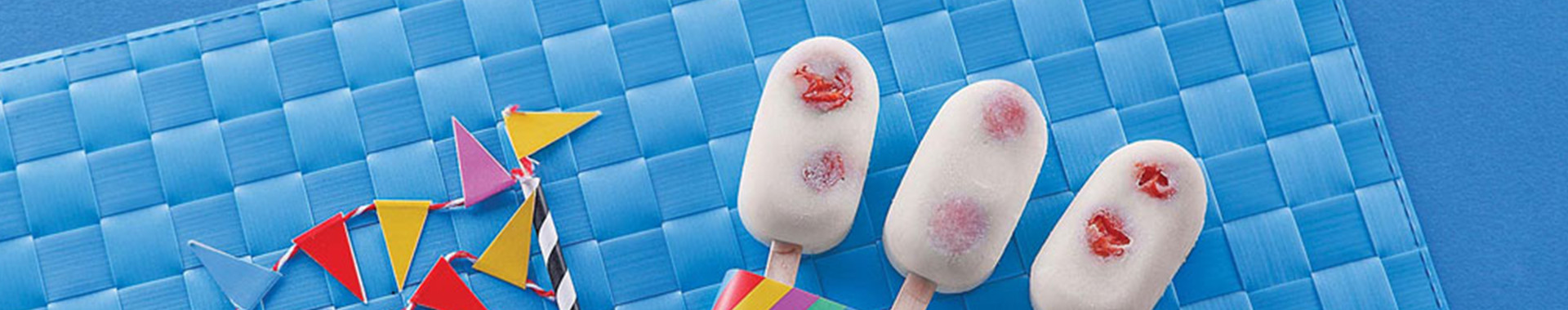 Leave to set in the refrigerator for 30 minutes, remove from the moulds, insert the wooden stick and serve them as if it were ice-cream lollipops.