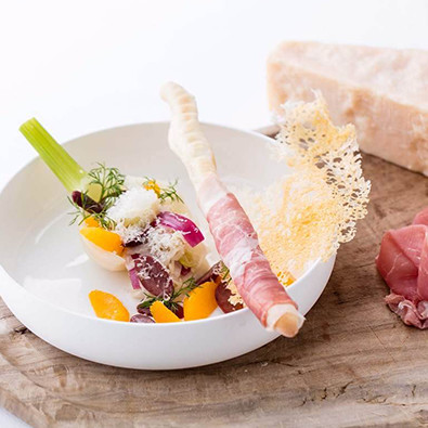 Den Ofenpfannkuchen aus dem Ofen nehmen. Sofort mit dem Pilz-Gemüse belegen. Großzügig mit Grana Padano Riserva Splittern bestreuen.