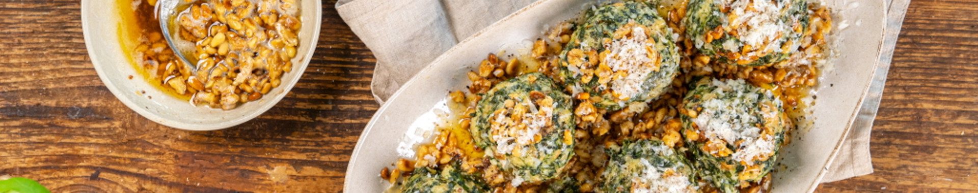 Grana Padano Spinat-Knödel mit Nussbutter & Pinienkernen