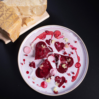 Die Ravioli auf etwas Kürbis anrichten, anschliessend die Röstzwiebel, Maronen und Rosenkohlblätter verteilen. Zum Schluss mit Grana Padano-Spänen dekorieren.