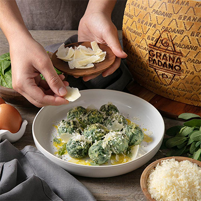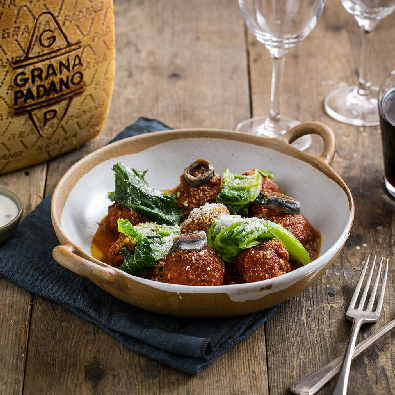 Home < Vorschläge zum Servieren < Hauptgerichte Hauptgerichte Es gibt Rezepte, die immer glücklich machen. Mit der unverwechselbaren Note von Grana Padano ist ein Lächeln am Tisch garantiert. ReifungGrana PadanoGrana Padano RiservaVielfaltBackwarenBrotFischFleischGemüseGnocchiPastaReisSandwiches und PizzaSuppenWarme GerichteWarmes FingerfoodZeitUnverträglichkeitenLaktosefreiOhne GlutenAlle anzeigen 1 2 3 4 … 11 Alle anzeigenEinfach2 per.25 min Putengeschnetzeltes mit Orangengeschmack, Baby-Kartoffelsalat, Sellerie und Grana Padano g.U. 9 bis 16 MonateEinfach4 per.45 minKartoffel-gnocchi mit Spargel, Erbsen, Favabohnen und Grana PadanoMittel4 per.45 min„Gnudi“ aus Ricotta und Spinat mit Grana Padano, Butter und SalbeiEinfach6 per.40 minKnusprige Hähnchenschenkel mit Grana Padano und getoasteten BrotkrümelEinfach4 per.30 minAuberginen-Frikadellen mit Grana PadanoEinfach6 per.Lammfleischbällchen mit Grana Padano und JoghurtMittel4 per.60 minScrambled eggs with pork slivers in Grana Padano basketsMittel4 per.Scallop and English asparagus with Grana PadanoMittel4 per.110 minSpinach and Grana Padano stuffed mussels recipeEinfach4 people40 minPork loin rolls with potato purée and Grana PadanoEinfach4 per.50 minDuck rolls browned with Grana PadanoEinfach4 per.75 minMutton-and-Provolone Valpadana tarts in a Grana Padano fondueEinfach4 per.30 minSteamed egg custard with Grana PadanoEinfach4 per.30 minPepper-salt pork spareribs with battered Grana PadanoMittel4 per.75 min5 spice pork spare-ribs with Grana Padano crispsSchwierig4 per.70 minOxtail simmered in red wine from Valtellina with crispy polenta and Grana PadanoMittel6 per.55 minGEBACKENE EIERBOOTE MIT SPINAT, PILZE, GRANA PADANO UND PROSCIUTTO DI SAN DANIELEEasy4 people25 minInvoltini von Prosciutto di San Daniele und geschmortem Chicorée mit Salat von violetten Artischocken und Scaglie di Grana PadanoMittel4 per.85 minWaldpilze mit Zitronenthymian und Grana Padano im Pergament gebacken, dazu San Daniele Schinken HörnchenEinfach4 per.80 minItalienische Kalbsrouladen mit Prosciutto di San Daniele Füllung im Tomaten–OlivensugoEinfach4 per.50 minProsciutto di San Daniele, Shaved Grana Padano, Grilled Asparagus and Watercress MayonnaiseSchwierig4 per.80 minKürbis und Grana Padano Kroketten mit Balsamico DipMittel4 per.50 minGrana Padano Panna Cotta mit Chips, Lachs, Olivenkruste und Rosé GeleeMittel4 per.60 minWEIHNACHTS-KNÖDELCHEN MIT GRANA PADANO BRUNNENKRESSE DIPAlle anzeigen 1 2 3 4 … 11 Alle anzeigen