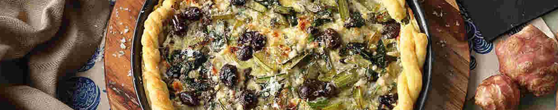 Ein rundes Backblech mit dem Mürbeteig auslegen und mit der Mischung aus Ricotta und Gemüse füllen.