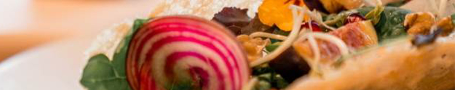 Salat waschen und trocken schleudern. Granatapfel entkernen, Feigen waschen und vierteln, Walnüsse hacken. Ringelbete und Apfelhälften mithilfe eines Gemüsehobels in sehr feine Scheiben schneiden. Die Käsekörbchen mit Salat und den restlichen Zutaten außer den Sprossen und den Walnüssen dekorieren. Mit 3 EL Dressing beträufeln und mit Walnüssen und Sprossen fertig dekorieren.