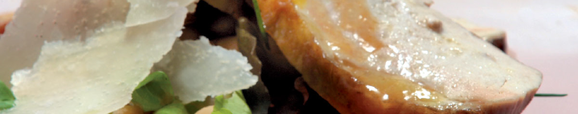 Verteilen Sie die angerichteten Salate, Bohnen und geschnittenen Perlhuhnbrüste auf vier flache Teller. Mit einem Schuss Öl würzen. Komplett mit den Grana Padano DOP-Flocken.