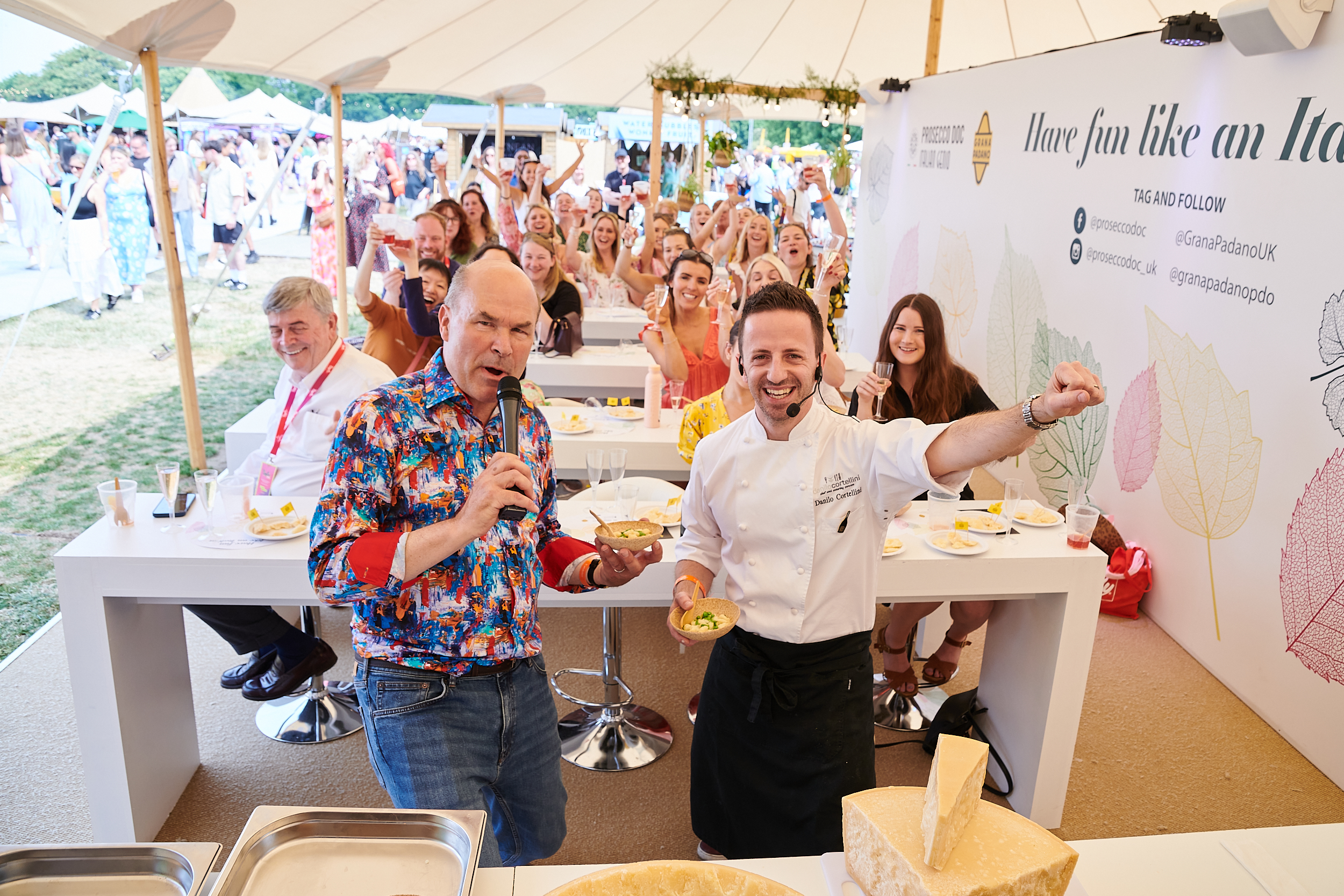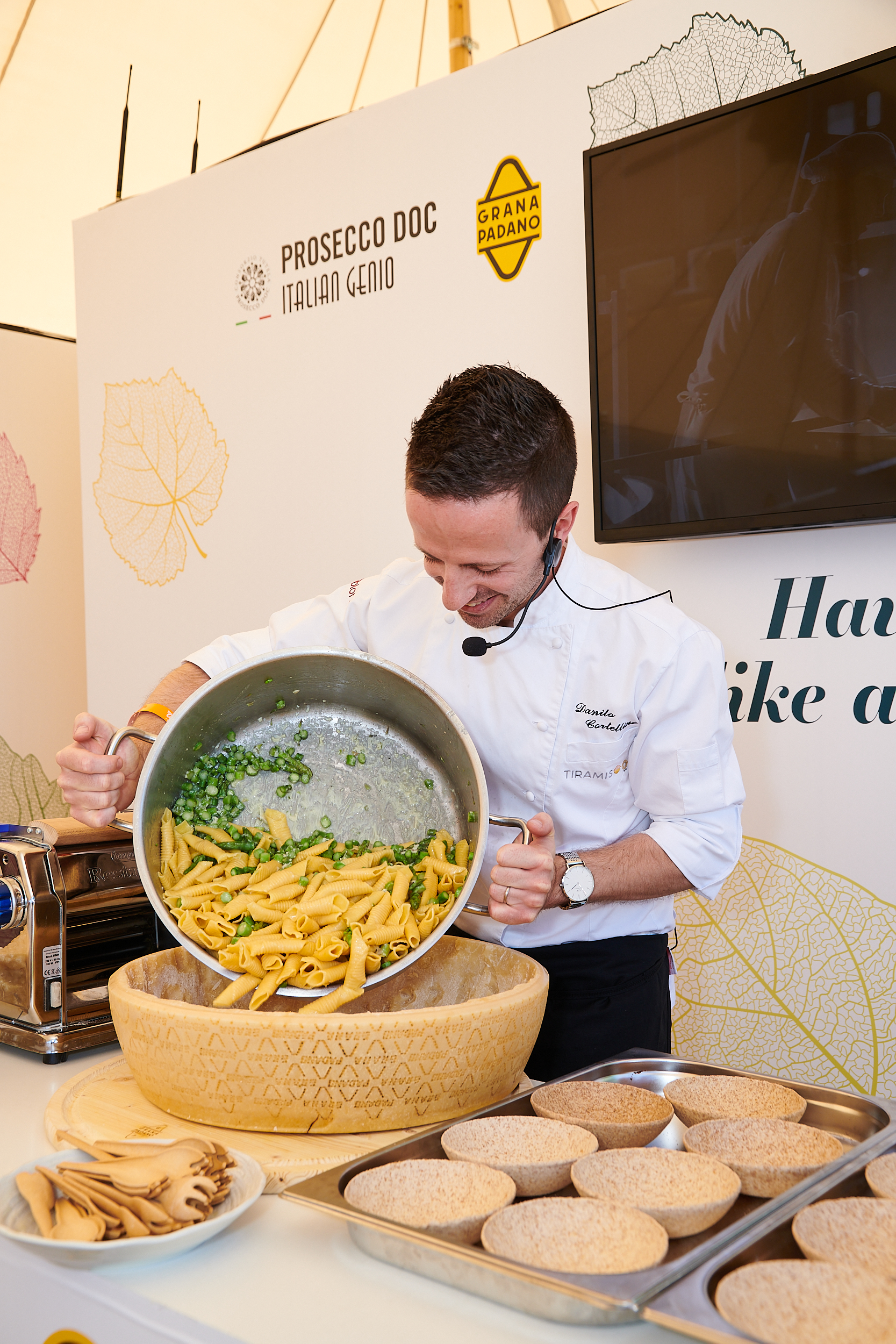 Francesco Mazzei, who has supported Grana Padano for many years, will also be present with his namesake popular pop-up restaurant where he will serve his Truffle Pasta with Grana Padano served in the half-wheel.