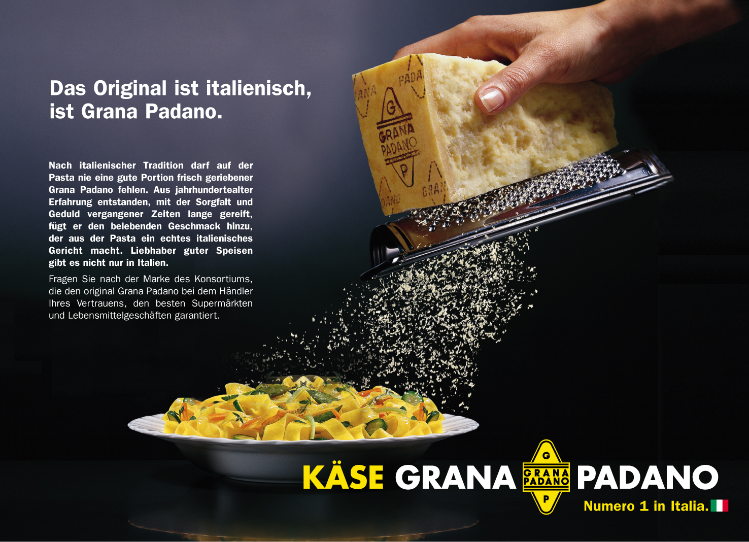 Grana Padano is a leading product in Italy, but brand awareness is not well established internationally. Consumers confuse it with parmesan and do not see it as an Italian product. So the advertising focuses on its popular use ad a grated cheese by communicating its leadership in the payoff.