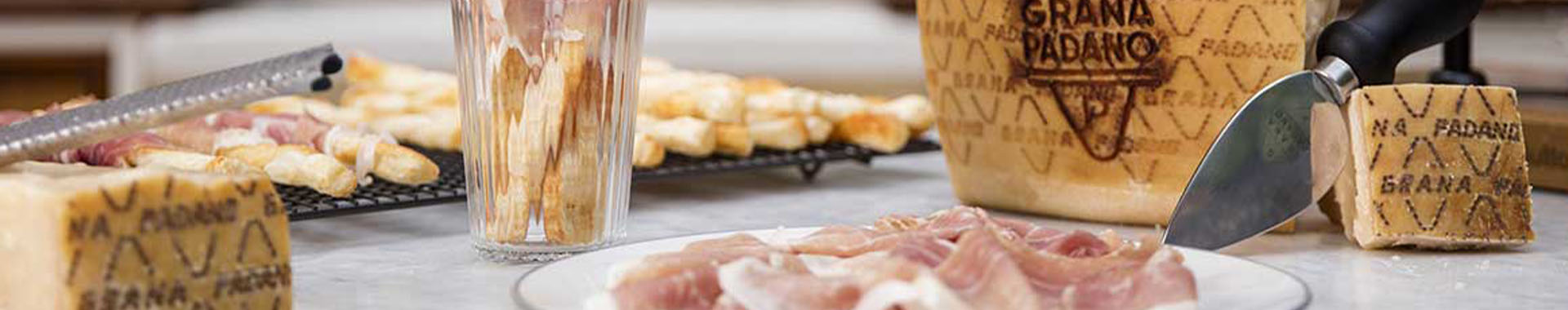 Grana Padano cheese pastry straws, wrapped in Prosciutto di San Daniele