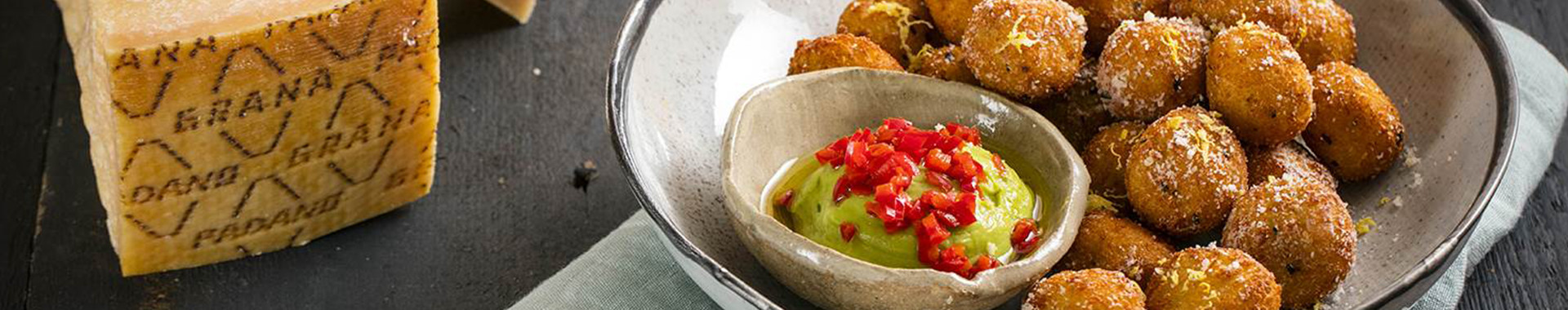 Grana Padano ciabatta dumplings with avocado, Amalfi lemon and chilli dip