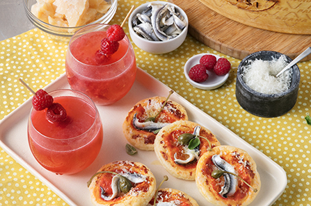 Serve the mini pizzas with marinated anchovies and capers.