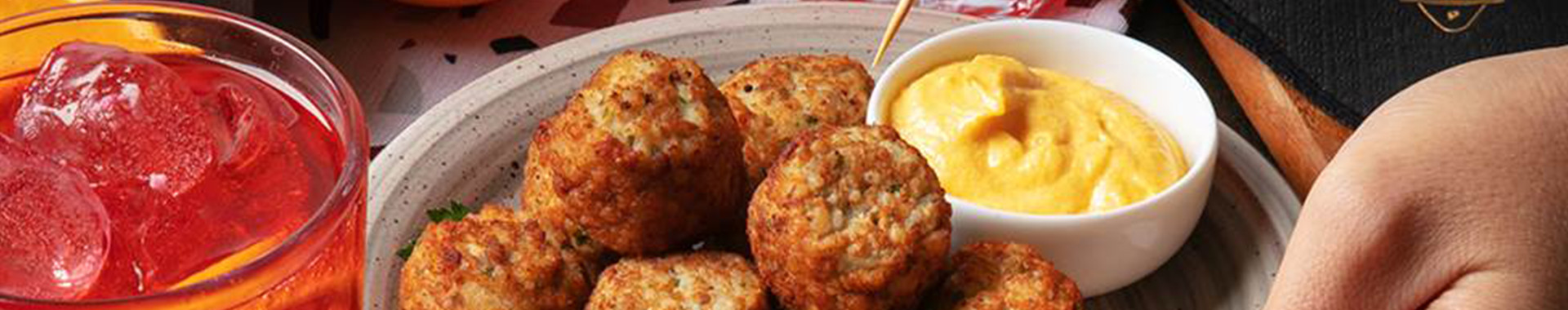 Salt Cod Balls with Grana Padano and Mustard Mayonnaise + Spritz Select