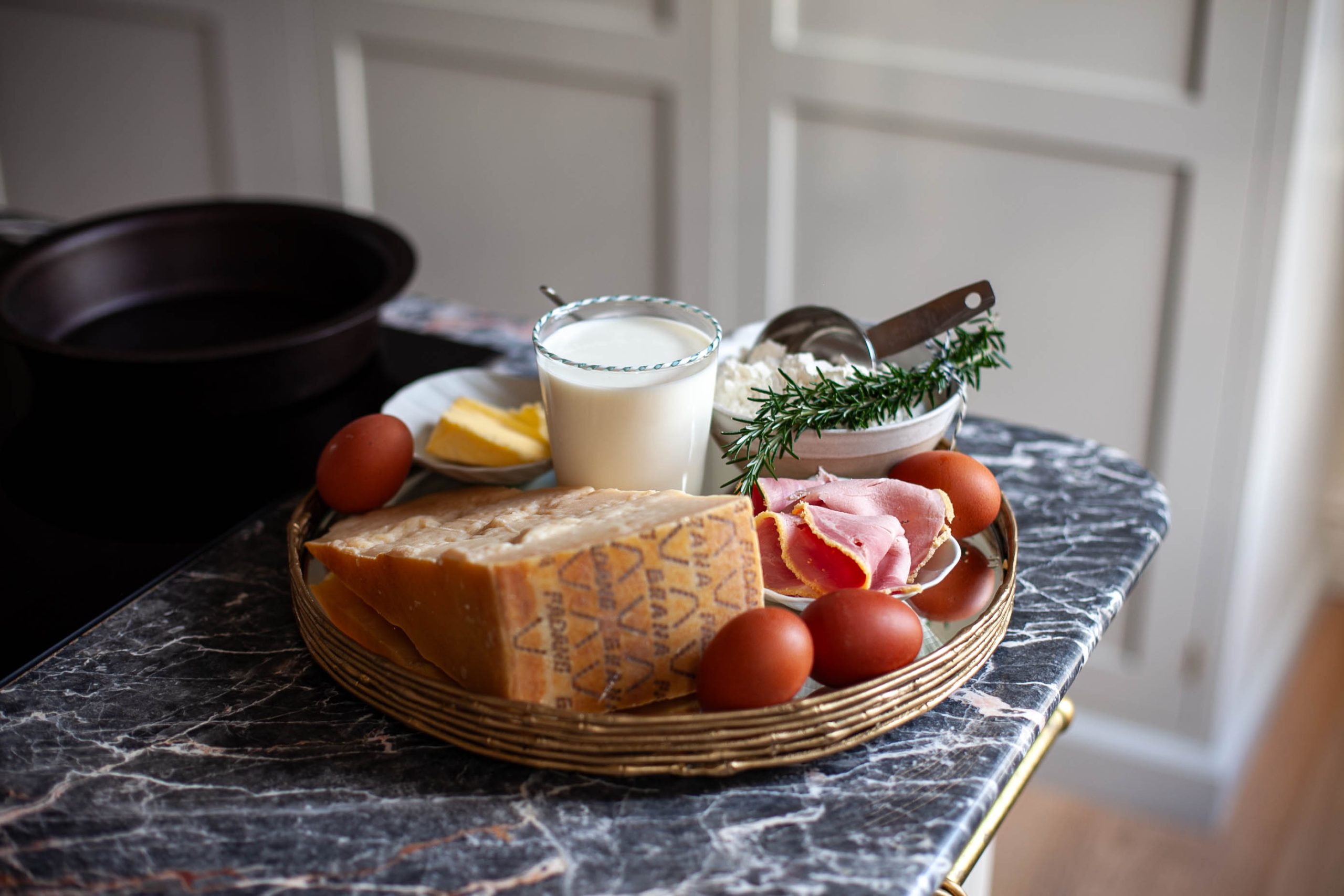 Place your dish in the oven to preheat, anything with a heave base or cast iron works well. Once hot, after a few minutes throw in your butter and allow to begin to turn golden, again a couple of minutes will do it. Next add in the sprigs of rosemary followed by the batter. You want to do this as quickly as possible so the heat doesn’t dissipate. Depending on how you like your Dutch baby you can either make one large and more doughy variation (my preference) or two thinner more crisp versions.