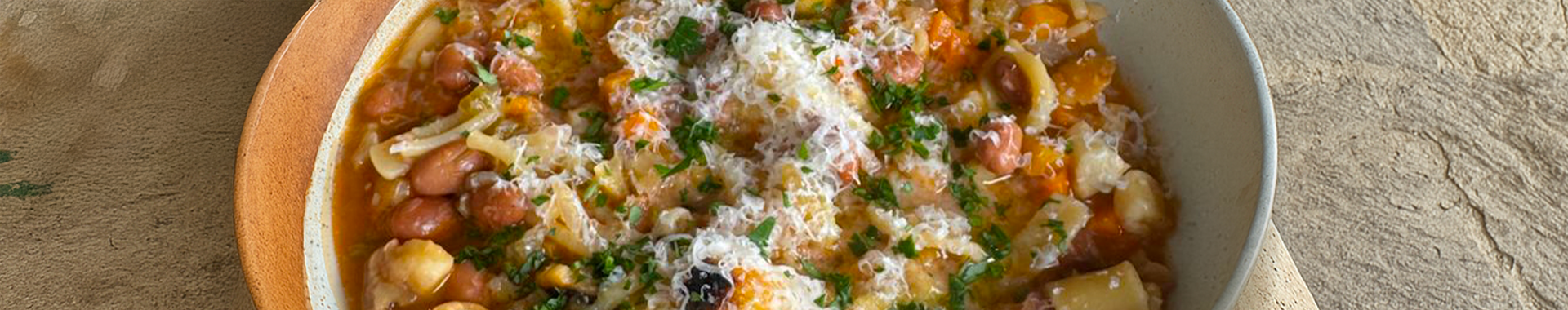 Beans & roasted chestnut soup with Grana Padano rinds
