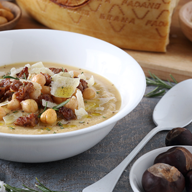 Home < Serving suggestions < Italian classics Italian classics The Italian culinary tradition brings well-being, indulgence and joy to the table. Revel in the flavours of our country’s classic recipes with the definitive Italian ingredient: Grana Padano AgeingGrana PadanoGrana Padano RiservaVarietiesFishGnocchiHot dishesHot finger foodMeatPastaRiceSoupsVegetablesTimeIntoleranceGluten FreeLactose freeSee all 1 2 3 4 5 6 7 See allMedium4 people135 minCasonseiEasy6 people75 minCampanelle with cauliflower, sundried tomatoes and garlic4 people50 minRisotto with olive oil, Grana Padano, cauliflowers and Prosciutto di San DanieleEasy8 people80 minTomato and Bread SoupEasy6 people25 minSpaghetti with Sun Dried Tomato PestoEasy6 people30 minZiti with Broccoli Rabe and SausageEasy4 people25 minCacio e pepe “Tonnarelli” with Grana Padano, broad beans and courgette flowersMedium4 people120 minMushroom Ravioli with Sautéed Radicchio and Grana Padano PDO RISERVAEasy4 people40 minVelvety Chickpea, Chestnut and Sausage Soup with Rosemary and Grana Padano PDO RISERVAEasy4 people40 minCold Curried Soup with Chicken, Courgettes, Potatoes, Carrots, Cherry Tomatoes and Grana Padano PDOEasy4 people30 minRisotto with Grapes, Prosciutto and Grana Padano PDO RISERVAEasy4 people40 minVelvety Spinach and Potato Soup with Grana Padano CrispsMedium4 people60 minBeetroot Ravioli Filled with Ricotta, Herbs and Grana Padano RiservaMedium4 people30 minPassatelli in broth and Grana Padano RiservaEasy4 people60 minCreamy Broccoli Soup, Crispy Paprika Chickpeas and Grana Padano RiservaDifficult4 people270 minRavioli with Braised Beef and Grana Padano RiservaEasy6 per.210 minRagu LasagnaEasy4 people30 minOven baked pasta with bechamel, broccoli, bacon and Grana Padano RiservaMedium4 people90 minParsnip and pear “risotto”, bitter cocoa tuile and Grana Padano creamEasy4 people30 minPaccheri with Grana Padano, pepper and artichokesEasy4 people30 minTrofie with sautéed spinach, almonds and Grana Padano RiservaEasy4 people40 minRisotto with asparagus and Grana Padano RiservaEasy4 people45 minCreamy Pea Soup with Mint, Yoghurt and Grana PadanoMedium4 people90 minLasagna with Vegetable Sauce and Grana Padano RiservaSee all 1 2 3 4 5 6 7 See all
