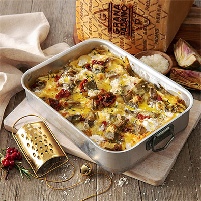Home < Serving suggestions < Italian classics Italian classics The Italian culinary tradition brings well-being, indulgence and joy to the table. Revel in the flavours of our country’s classic recipes with the definitive Italian ingredient: Grana Padano AgeingGrana PadanoGrana Padano RiservaVarietiesFishGnocchiHot dishesHot finger foodMeatPastaRiceSoupsVegetablesTimeIntoleranceGluten FreeLactose freeSee all 1 … 3 4 5 6 7 See allMedium4 people60 minRice with Mussels, Potatoes, Tomaotes & Grana Padano RiservaMedium4 people45 minSpaghetti Carbonara with Seafood, Grana Padano and ParsleyMedium4 people60 minPurple Potato Gnocchi and Baby Spinach with Grana Padano RiservaEasy4-6 people30 minGazpacho with croutons and Grana PadanoMedium4 people70 minGrana Padano Riso al SaltoMedium4 people70 minGrana Padano and black truffle CulurgionesMedium4 people110 minBBQ aubergine gnocchi with tomatoes, basil and Grana PadanoEasy4 people60 minSoft polenta with mushroom stew and Grana Padano shavingsMedium4 per.105 minShrimp scampi ravioli with Grana Padano fondue, chives and orange zestMedium4 people60 minCappelletti with DOC Prosecco and Grana Padano SabayonEasy4 people35 minLettuce Risotto with Anchovies and Grana Padano RiservaMedium4 people20 minPaccheri with Sautéed Cherry Tomatoes and Grana PadanoMedio20 minPaccheri con pomodorini saltati e Grana PadanoEasy4 people40 minWhole Wheat Pennette with Pistachio Pesto and Grana Padano RiservaMedium4 people60 minSpaghetti with Meatballs and Grana Padano Riserva cheeseMedium4 people60 minPotato Gnocchi Filled with Grana Padano Riserva and Prosciutto, garnished with Courgette and Basil PestoEasy4 people60 minPumpkin risotto with Grana Padano and vegetable crispsEasy4 people30 minPan-fried pumpkin gnocchi with Grana Padano, rosemary, speck, and hazelnutsMedium4 per.45 minPizzoccheri with Grana Padano RiservaMedium4 people30 minSalmon Risotto with leek, lemon thyme and Grana Padano RiservaMedium4 people120 minWhite Lasagne with artichokes, light béchamel sauce and Grana PadanoEasy4 people60 minFennel, Leek and Grana Padano soup with rye breadEasy2 per.30 minCaserecce with sausage ragout and fondue of Grana Padano Riserva6-8 peopleCavatelli with white ragoutSee all 1 … 3 4 5 6 7 See all
