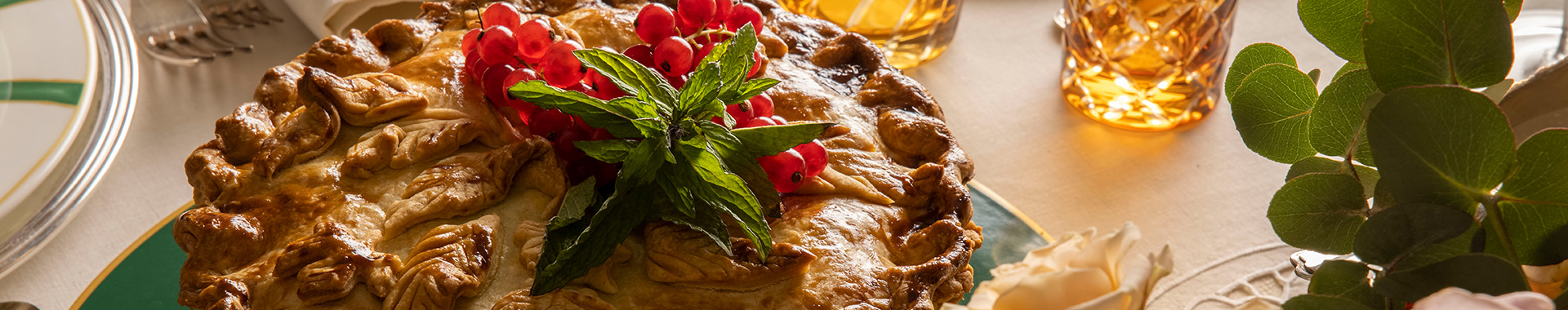 Roll out the leftover pastry. Cut into leaf shapes and arrange on top of the pie as decorations.