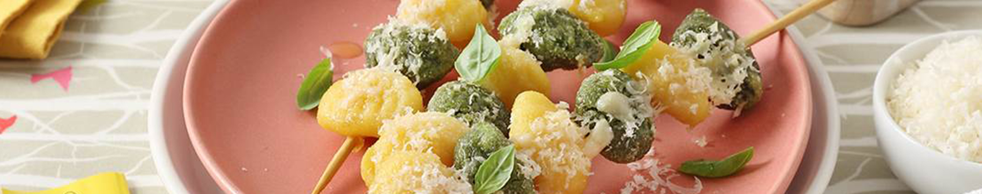 Boil the potatoes in their skins in salted water. Drain, let cool, peel and mash with a ricer until creamy, then separate the mashed potatoes into two bowls.