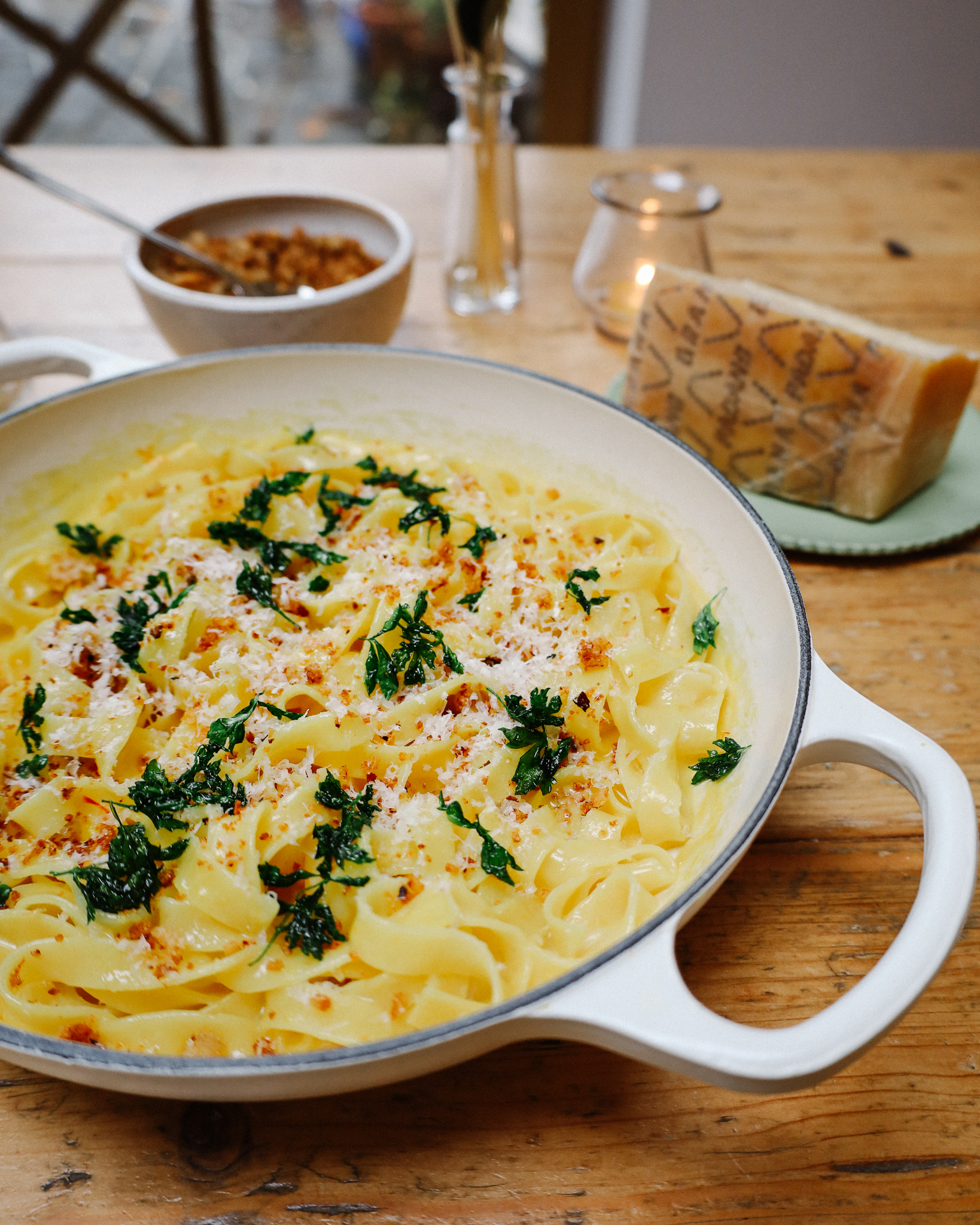 Saffron Tagliatelle with Grana Padano Breadcrumbs and Crispy Parsley
