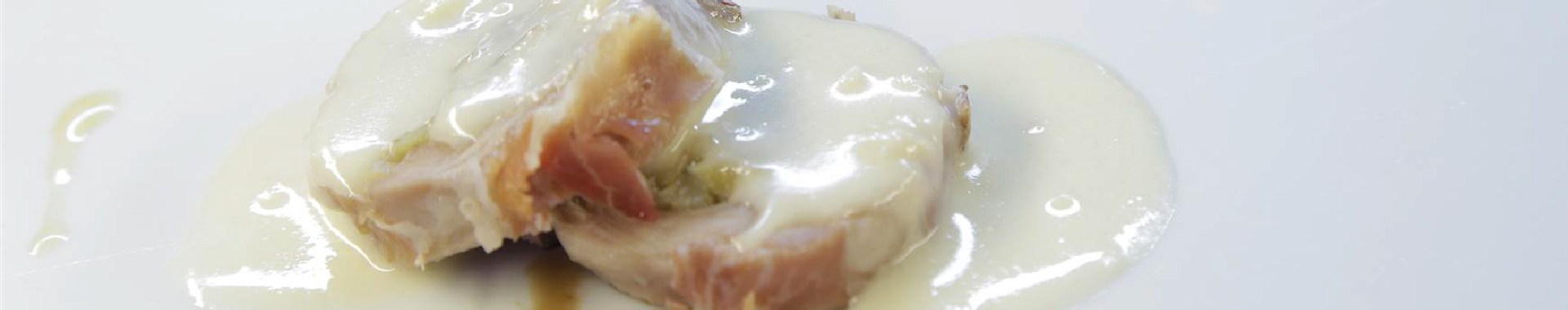 Turkey stuffed with Grana Padano and speck, slowly cooked and paired with a taleggio sause
