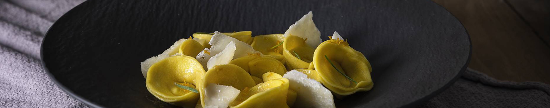 Cook the tortelli in salted water, drain and season in a pan with the remaining butter and rosemary.