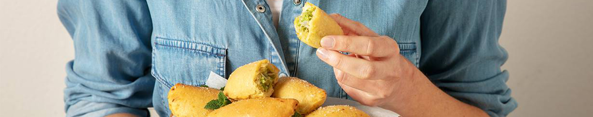 Cut out disks 10 cm in diameter, using a pastry cutter. In the centre, fill with a spoonful of broad bean puree, close the disks on themselves in a crescent shape and place the panzerotti on a baking tray covered with baking paper.