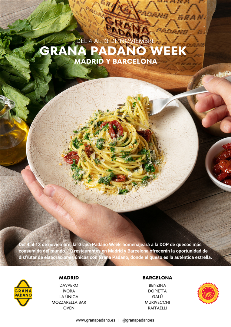 Grana Padano se ha convertido en la denominación de origen protegida de quesos más consumida del mundo, y tras el éxito recogido en las anteriores ediciones tanto en Madrid como en Barcelona, vuelve a celebrar la ‘Grana Padano Week’. La cuarta edición tendrá lugar del 4 al 13 de noviembre y participarán 10 restaurantes de ambas ciudades que harán que el queso Grana Padano sea la estrella.