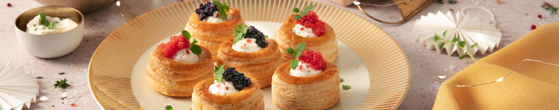 Rellenar las tarteletas con la mousse y decorar con las huevas de lumpo y algunas hojitas de mejorana.