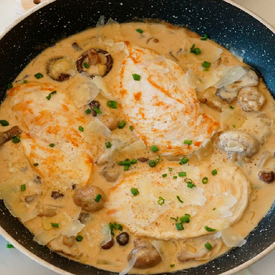 Añadimos el queso Grana Padano rallado junto con el pollo, y damos un hervor a fuego suave. Decoramos con las rodajas de limón y el perejil finamente picado ¡y listo!