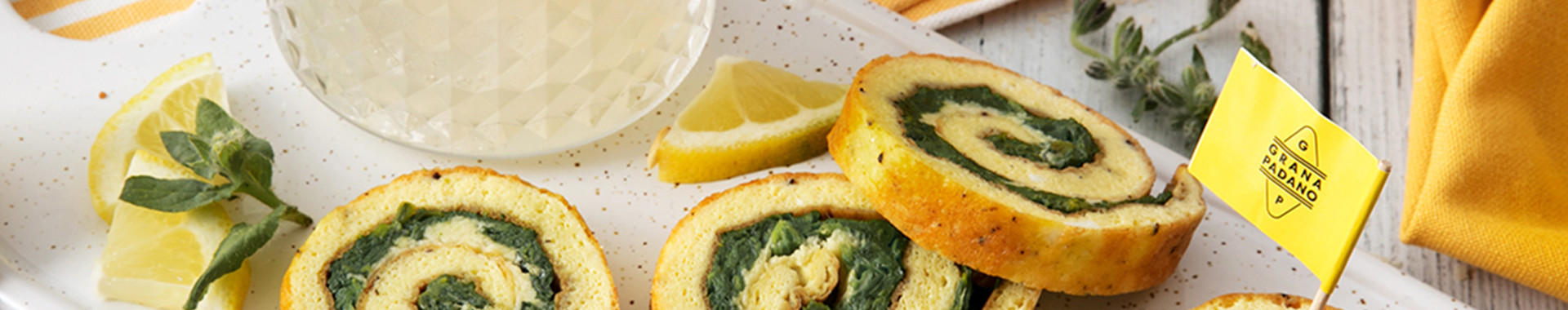 Limonade à la bourrache, omelette roulée aux épinards et Grana Padano