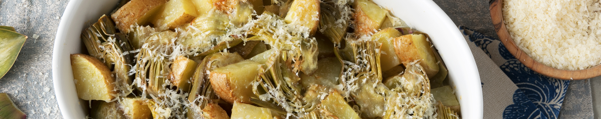 Dans un saladier, mélangez 1 cuillère à soupe de chapelure, le Grana Padano râpé et l’ail finement haché. Ajoutez les artichauts et les pommes de terre, mélangez bien et assaisonnez avec sel et poivre.