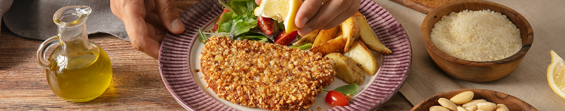Escalope de poulet à la chapelure d’amandes et Grana Padano