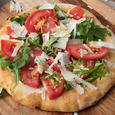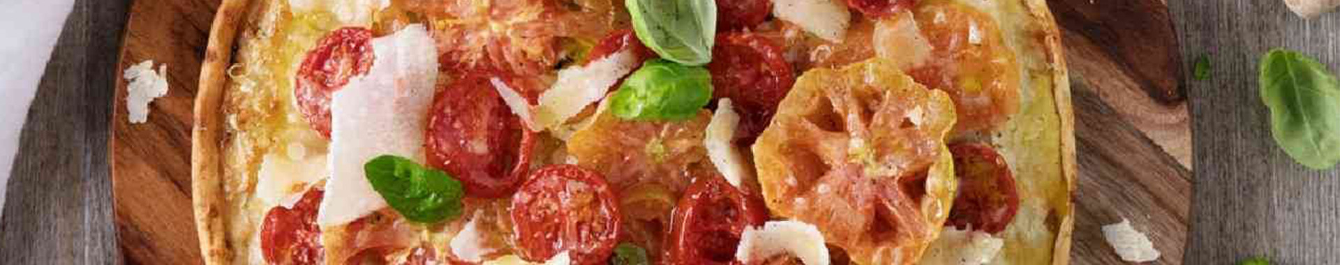 Remplir la base de la pâte brisée avec la crème de ricotta et la recouvrir en alternant les tranches de tomates et les flocons de Grana Padano. Saupoudrer de Grana Padano râpé, d’une pincée de sel, d’un filet d’huile d’olive extra vierge et d’un tour de moulin à poivre, et cuire au four préchauffé à 180°C pendant 30 minutes. Servir la pizza encore chaude, en la garnissant de feuilles de basilic frais.