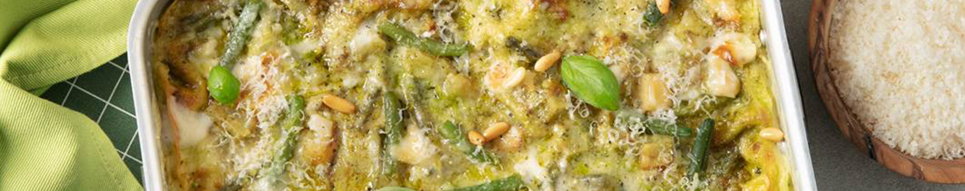 Lasagnes au pesto avec haricots verts, pommes de terre et fromage Grana Padano