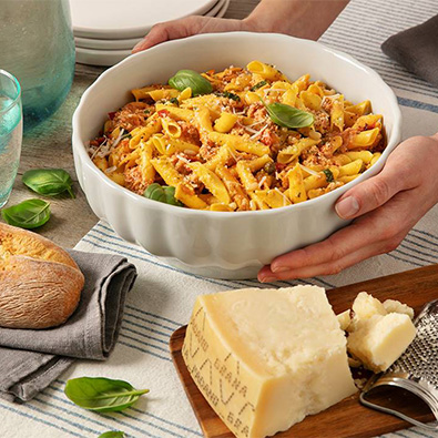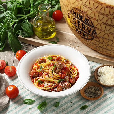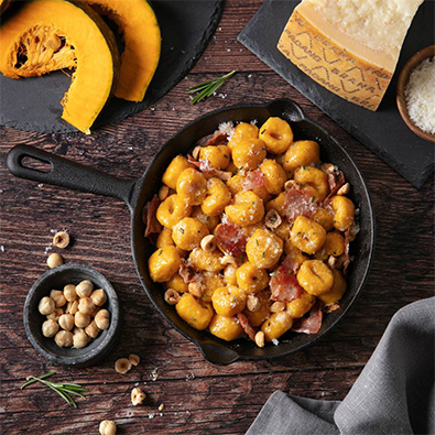 Home < Dégustation < Recettes traditionnelles italiennes Recettes traditionnelles italiennes La tradition culinaire italienne rassemble bien-être, gourmandise et joie à la table. Dégustez les recettes classiques de notre pays avec l’ingrédient italien par excellence : le Grana Padano. AffinageGrana PadanoGrana Padano RiservaVariétéGnocchiLégumesPâtesPlats chaudsRizSaladesSoupesViandeTempsIntolérancesSans glutenSans lactoseVoir tout 1 2 3 4 Voir toutFacile4 per.20 minPenne aux aubergines, olives noires, tomates fraîches, basilic et Grana Padano RiservaFacile4 per.25 minSpaghetti aux fanes de navets, tartare de saumon et Grana PadanoFacile4 per.30 minFusilli aux courgettes, ricotta, menthe et Grana PadanoFacile4 per.30 minSpaghetti ail, huile et piment, crème de Grana PadanoMoyen4 per.75 minGnocchi à la romaineFacile4 per.30 minCouscous, melon, avocat, menthe, pignons et copeaux de Grana PadanoFacile4 per.30 minRisotto au Grana Padano Riserva et aux cèpesFacile8 per.80 minSoupe à la tomateMoyen4 per.30 minBouillon de passatelli et Grana Padano RiservaFacile6 per.210 minLasagnes à la bolognaiseFacile4 per.40 minRisotto aux asperges et Grana Padano RiservaMoyen4 per.90 minLasagnes végétariennes et Grana Padano RiservaMoyen4 per.45 minSpaghetti à la carbonara aux fruits de mer, Grana Padano et persilFacile 4-6 per.30 minGaspacho aux croûtons et Grana PadanoMoyen4 per.60 minGnocchis de pommes de terre violettes et jeunes épinards au Grana Padano RiservaFacile 4 per.60 minPolenta crémeuse avec ragoût de champignons et copeaux de Grana PadanoMoyen4 per.105 minRaviolis farcis aux scampis avec fondue de Grana Padano, ciboulette et zeste d’orangeMoyen4 per.20 minPaccheri aux tomates cerises sautées et Grana PadanoMoyen4 per.60 minSpaghettoni à la sauce tomate aux boulettes de viande et Grana Padano RiservaFacile4 per.60 minRisotto à la courge, chips de légumes et Grana PadanoFacile4 per.30 minGnocchi de courge sautés à la poêle, Grana Padano, romarin, speck et noisettesMoyen4 per.45 minGratin de pizzoccheri au Grana Padano RiservaFacile2 per.30 minCaserecce au ragout de saucisse avec fondue de Grana Padano RiservaFacile4 per.35 minGarganelli à base d'œufs avec tomates séchées, pignons, câpres, pesto rouge et Grana PadanoVoir tout 1 2 3 4 Voir tout