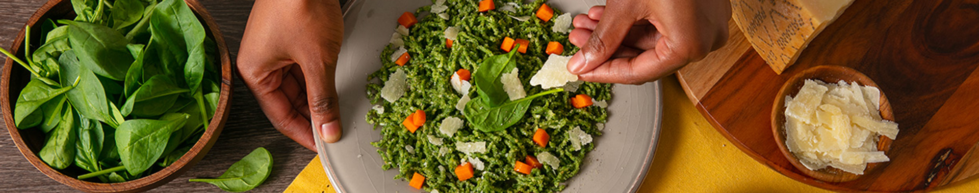 Dans un bol, mélanger la crème aux épinards et aux œufs avec la chapelure, le Grana Padano finement râpé, la farine et une pincée de noix de muscade. Bien mélanger le tout jusqu’à obtenir un mélange ferme et compact. Former une boule, l’envelopper dans du film alimentaire et la laisser reposer au réfrigérateur pendant 30 minutes.