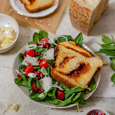 En fin de cuisson, ajouter le Grana Padano Riserva Oltre 20 Mesi râpé grossièrement, bien mélanger et servir avec un filet d’huile d’olive vierge extra crue et des feuilles de basilic.
