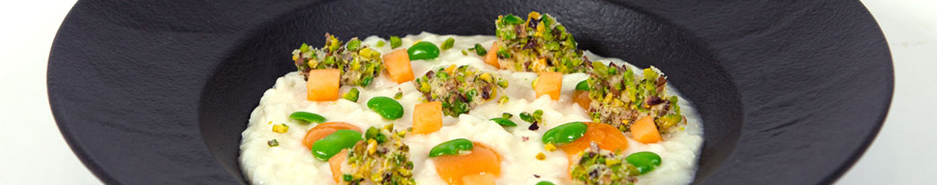 Risotto al Grana Padano Riserva, dolce forte forte di melone e croccante di Grana Padano ai pistacchi