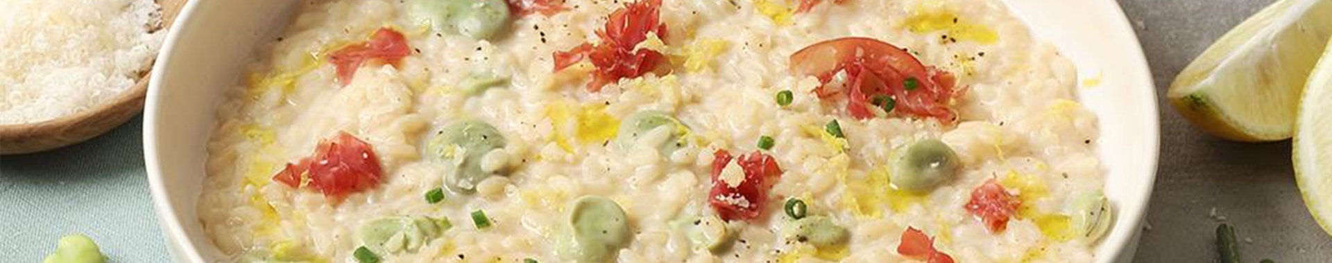 Light risotto with fava beans, bresaola, lemon and Grana Padano