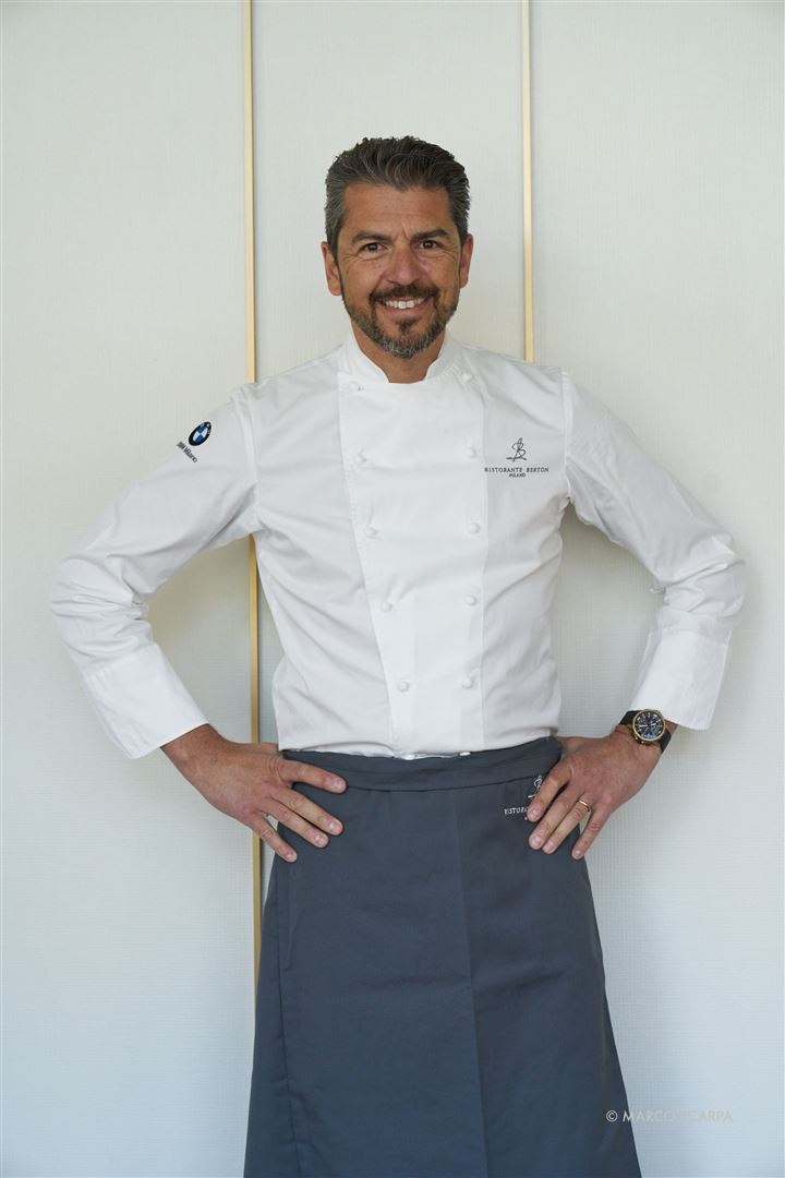Andrea Berton nasce in Friuli nel 1970. Inizia la sua avventura in cucina a Milano nella brigata di Gualtiero Marchesi in Via Bonvesin de la Riva, dove rimane per otto anni. La sua formazione prosegue nei migliori ristoranti del mondo: prima da Mossiman’s a Londra, poi all’Enoteca Pinchiorri e Firenze, e infine al Louis XV di Montecarlo sotto la guida di Alain Ducasse, che affianca per quattro anni.