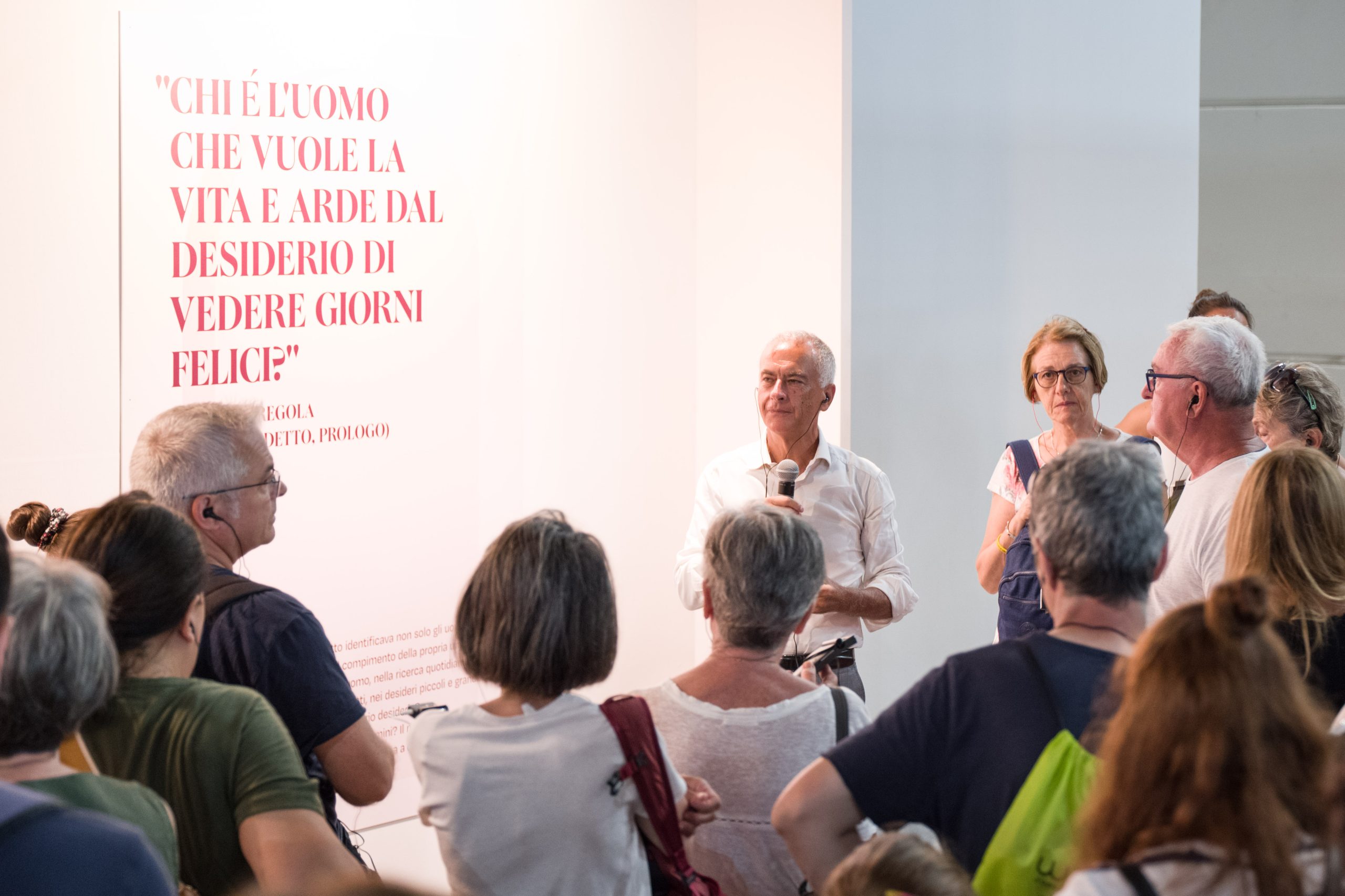 La mostra parte dalla storia dei monaci benedettini e porta il visitatore a capire se oggi sia possibile vivere il lavoro all’altezza dei propri desideri e se, in una situazione planetaria e anche intima di generalizzata incertezza, l’uomo possa accendere creatività e positività per affrontare la realtà e assaporare “il gusto del quotidiano”.