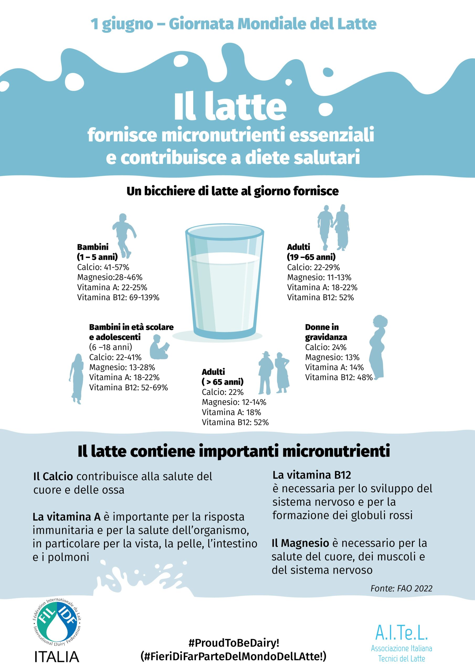 L’1 giugno è la Giornata Mondiale del Latte, istituita nel 2001 dalla FAO per celebrare, in tutto il mondo, l’importanza del latte nell’alimentazione.