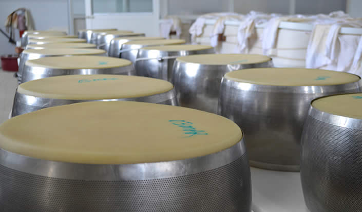 In questo caseificio si producono tutti i giorni 40 forme di Grana Padano, sabati, domeniche e festività sono coperti con passione e sacrificio, a turno dai dipendenti.