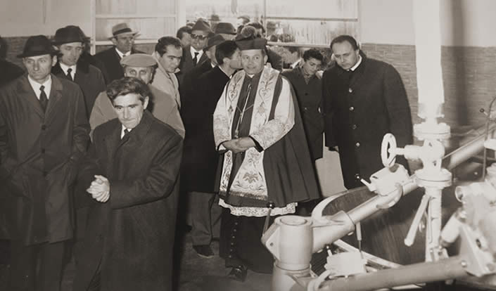 Nella prima foto possiamo vedere un’immagine che ritrae il giorno dell’inaugurazione del caseificio. Siamo a metà degli anni 60 e venne fatta una grande festa alla presenza anche delle autorità e del parroco, che benediva il caseificio.