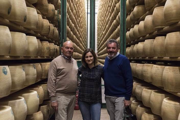 Nel 2006, Silvio e Sergio (nella foto, tra loro Ilenia Martinotti del Consorzio Grana Padano) entrano nella compagine della direzione di Bresciangrana S.r.l., ai tempi un caseificio di dimensioni piccole rispetto all’espansione non solo strutturale ma anche di produzione di oggi.