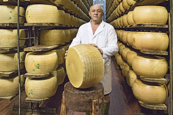 “Per me non c’è niente di meglio che creare un prodotto con le mie mani, queste forme di Grana Padano sono le mie bambine! Ricordo le mie giornate passate nel caseificio, dove mio padre Olimpio lavorava; non mi perdevo un istante della lavorazione, tanto che imparai ben presto a fare il casaro. La mia prima forma l’ho cotta a 8 anni, per me è un giorno indimenticabile. C’erano dei lavori in caseificio e un operaio si infortunò. Mio padre lo portò subito in ospedale, ma in caldaia c’era il latte che aspettava di essere lavorato. Insieme all’aiuto di mia mamma portammo avanti la lavorazione. La forma fu stagionata per ben 4 anni prima di essere consumata e quando la aprimmo la soddisfazione fu grande perché il formaggio era perfetto e buonissimo!”