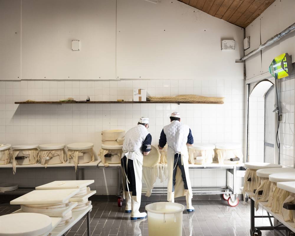 «Nel nostro caseificio – spiega Gianfranco – si lavora sempre in modo tradizionale iniziando ogni giorno alle 4 e mezzo del mattino. Qui la manualità e l’esperienza del casaro hanno un ruolo fondamentale. Non bisogna infatti dimenticare che la materia prima cambia in base alle stagioni in termini di grasso e contenuto proteico, di conseguenza occorre adeguare la trasformazione. È il casaro che, in base alla sua esperienza, decide come intervenire».