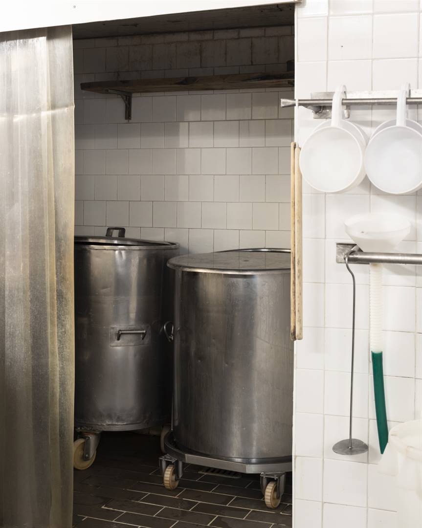 Un primo piano delle caldaie in caseificio