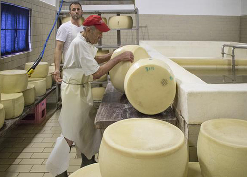 Damiano, insieme allo zio che ha 83 anni e che tutte le mattine alle 5:00 è operativo, produce ogni giorno 6 forme di Grana Padano.
